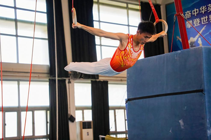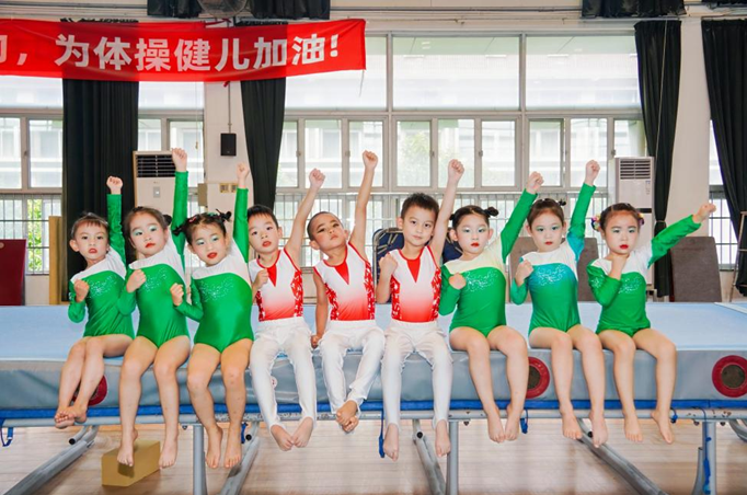 体操世界冠军梁富亮与孩子一起参加大众体操亲子组比赛