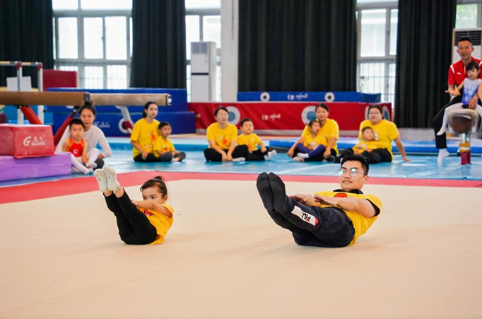 值得一提的是,本次赛事设立亲子组比赛,这不仅仅为家长与孩子们搭建了一个共同参与、携手竞技的体育平台,更在激烈而温馨的比赛中,悄然增进了家庭成员间的情感交流与默契配合。体操世界冠军梁富亮更是携手孩子一同参加亲子组比赛。在赛场上,家长们与孩子们肩并肩,心连心,共同努力去攻克每一个技术动作,相互鼓励的话语、坚定的眼神,在这份携手共进的过程中,他们共同享受着体操运动所带来的快乐与成就感,对孩童身心健康发展起到了积极的促进作用。