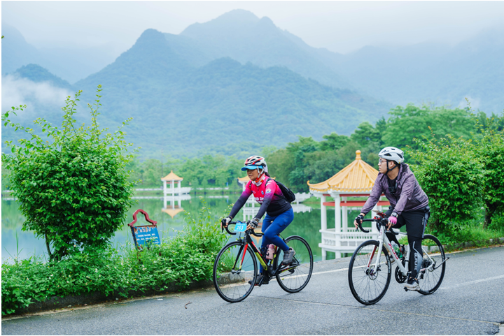 本次赛事特别规划了派潭镇“幸福河湖”示范段赛道,骑行者沿派潭河碧道穿行,仿佛置身于一幅天然的山水画卷之中,清澈的河面倒映着南昆山的翠影,生态护岸与智慧水文监测系统相得益彰,科技与生态在这里完美融合。