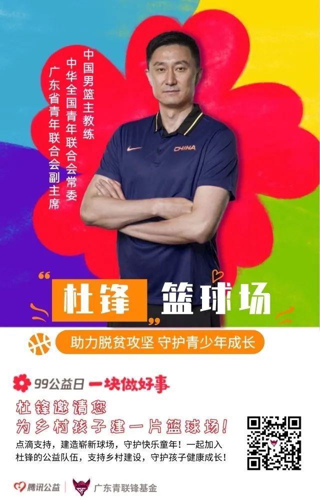 然而,对于贫困乡村的孩子来说,这却是遥不可及的梦想。 他们有一颗渴望打篮球的心,可场地让孩子们炙热的愿望无处安放: 学校现状 汕尾市海丰县陶河镇陶东小学:沙土地面篮球场,篮板脱落,是学校唯一的活动场地。 潮州湘桥区铁铺镇西陇小学:地面开裂下沉。 学校现状 茂名市高州市分界镇丰林小学:地面积水严重,旧式球架生锈受损 清远市清新区三坑镇枫坑小学:破损木质篮板。 公益倡议 这些球场既是孩子开展篮球活动的场地,也是体育锻炼的场所,同时更是作为孩子们课外活动的唯一载体,承载着一批又一批孩子的快乐童年。 不完善的设施困住了孩子们在球场上奔跑的快乐,束缚了孩子们热爱运动的天性,也限制了各位篮球种子选手大展身手的机会。 正是因为经历过体育设施匮乏的童年,杜锋更希望希望通过“杜锋篮球场”项目为更多热爱体育的青少年尤其是贫困地区的青少年提供锻炼场地,让他们可以快乐运动,健康成长。 扫描下方二维码,一起为乡村孩子建造篮球场吧。