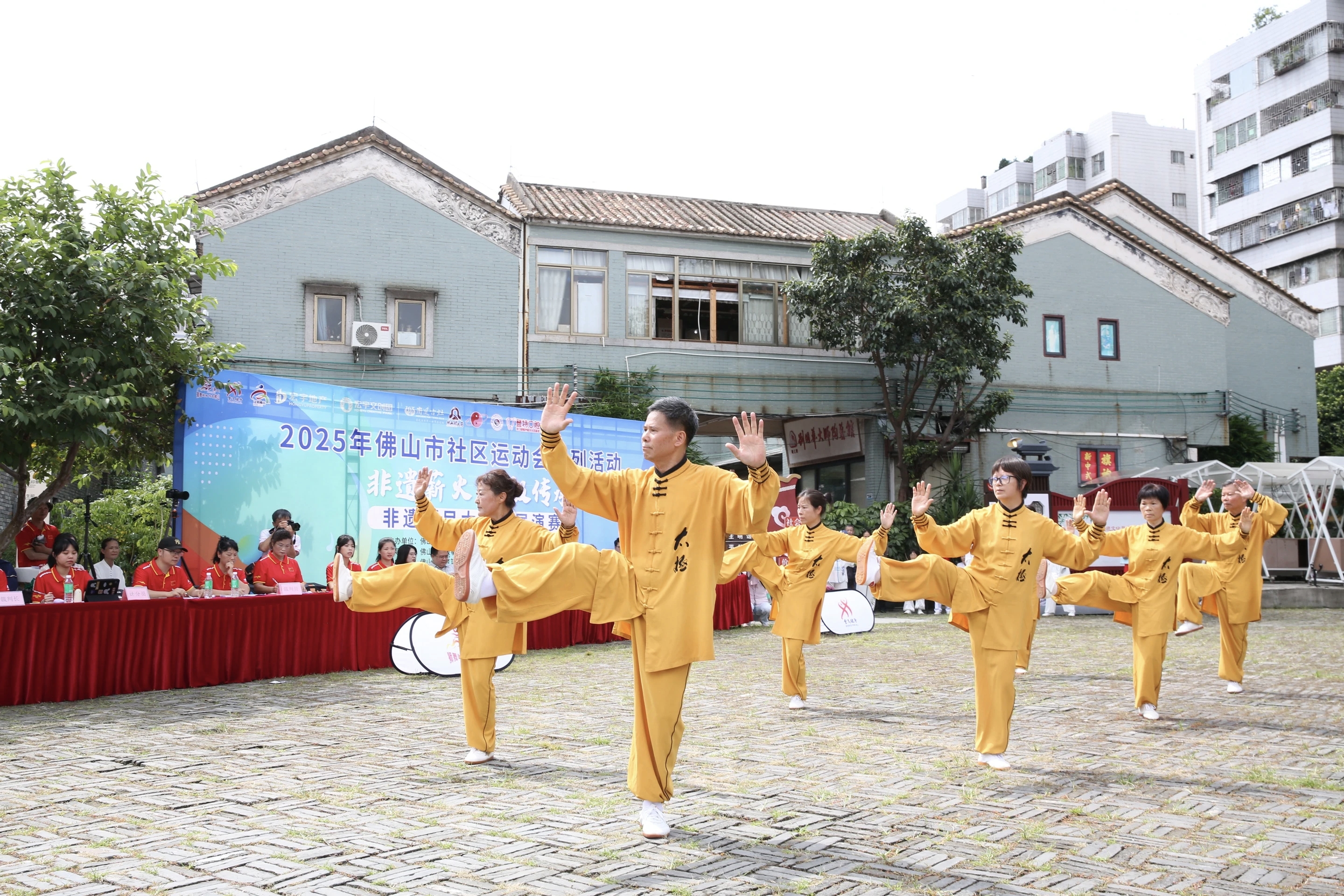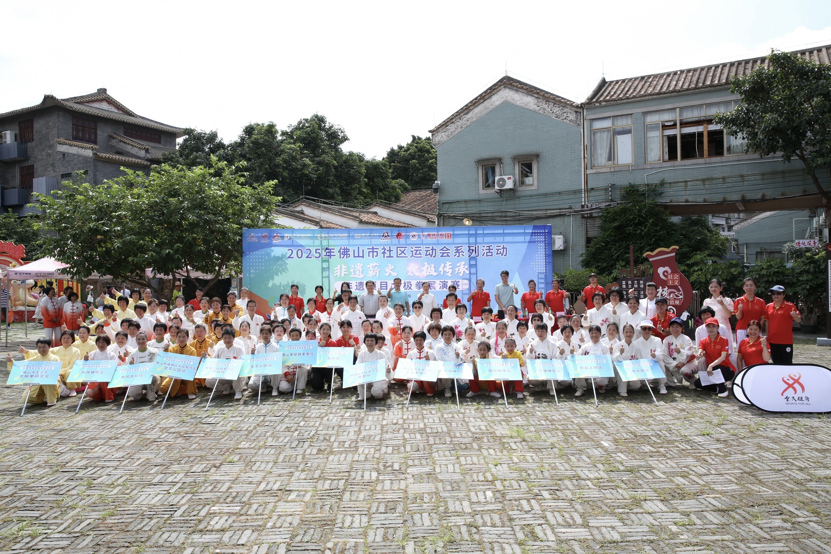 佛山市社区运动会非遗项目太极拳展演赛日前在佛山市禅城区南风古灶举行。本次活动以“非遗薪火太极传承”为主题,吸引了来自禅城区祖庙、石湾、张槎、南庄片区及拳社共14支太极拳队伍、近120名爱好者参与,共同展现太极拳的刚柔之美与非遗的深厚底蕴。