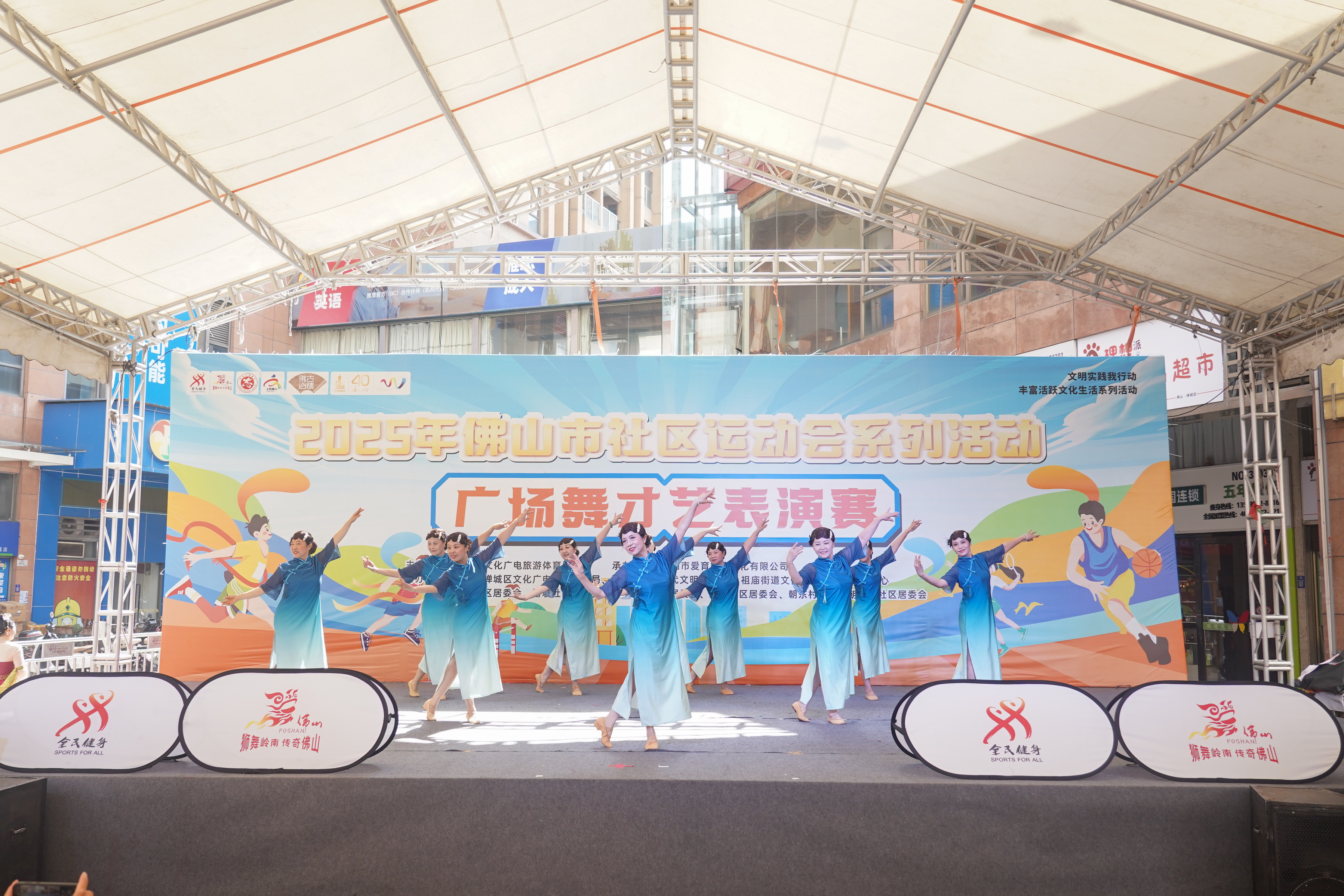 2025年佛山市社区运动会系列活动之广场舞才艺表演赛日前激情开场。来自普东、普南、塔坡、忠义等社区的13支代表队齐聚一堂,用她们的优美舞姿,展现新时代社区居民积极向上的精神风貌,传递全民健身的正能量。