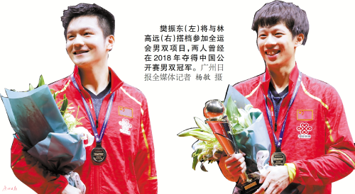 广东男队主教练李肇民透露,在本月20日到30日的预赛期间,樊振东将参加男双项目,与他搭档的是林高远,目标是挺进16强,这样就能获得全运会决赛阶段参赛资格。其实,樊振东/林高远并不是全新组合,他们曾经代表国乒参加2018年在深圳举行的中国公开赛并夺冠。在过去两届全运会上,樊振东均夺得男双金牌。李肇民认为,樊振东/林高远具备了一定的冲冠实力,但是其他队伍也有男双强档。如果顺利挺进16强,届时两人在全运赛场上的主要对手包括来自北京队的世乒赛冠军组合马龙/王楚钦。