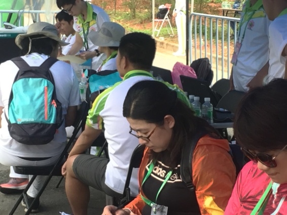 检查官在比赛现场认真执行任务