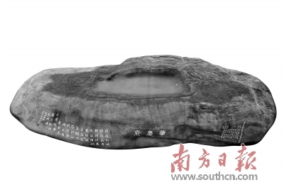 纪念砚材料选自肇庆斧柯山青花岩籽料,这是端砚石中制作大砚的优质砚材。为了不损害石材的完整性,这方重达6吨的原石依靠人力拉索,从300多米的山上运下。“搬运过程足足用了42天。”