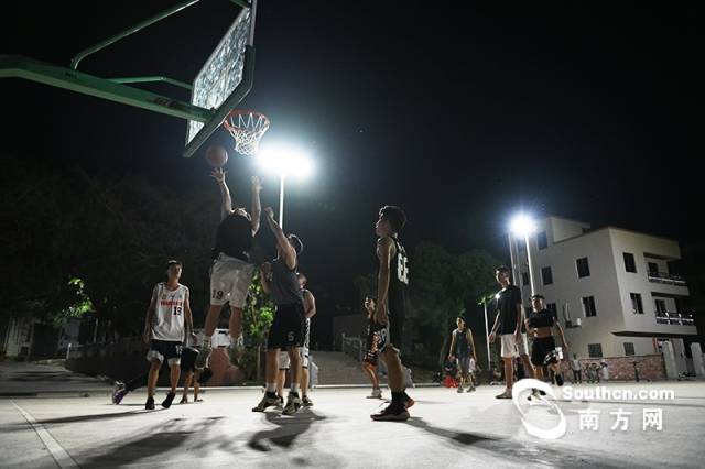 27日晚,低埇村篮球队在低埇自然村文体中心篮球场举行村内对抗赛,场边还架起了计分牌,双方比分紧咬。场上球员以年轻人居多,比赛节奏相当快,挡拆配合、突破分球、空位投射等战术样样有。激烈的比赛吸引了村里一大批年轻小孩驻足围观。