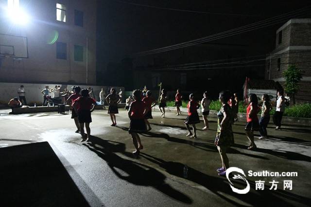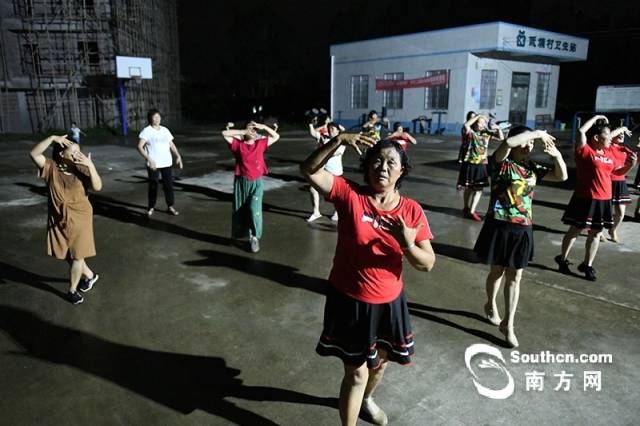 “广场的灯光,我们音响,我们的队服,都是驻村扶贫工作队配的”,58岁的领队余亚清满头大汗,忙着在音响前切换歌曲,“刚开始村里没人会跳广场舞,都在乱跳”,回想起过往画面,余亚清忍不住笑了起来,“我们用手机看视频学习,又从大城市打工回来的村民那里学习新舞蹈,长期积累,队伍的水平有了很大提升,我们还经常会被邀请到杨梅镇的各个村社区表演,虽然拿到的报酬不多,但我们图个开心健康就满足了。”