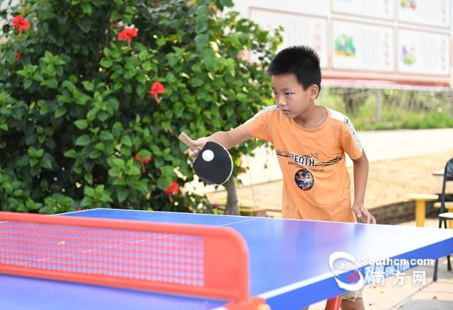 在省定贫困村——化州市杨梅镇低埇村,孩子们正在康体设施上快乐玩耍。在广东省二沙体育训练中心定点帮扶和精心打造下,低埇村里13个自然村配备了16套全民健身设施,当地群众感受到了“体育”带来的精神富足。