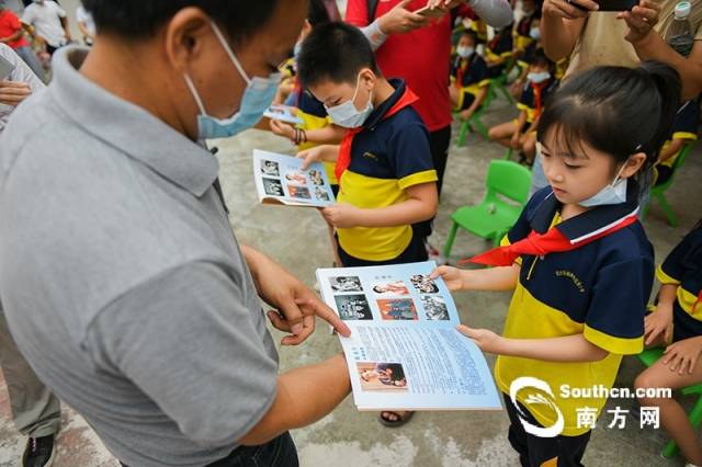 驻村扶贫工作队向低埇村小学捐赠了新一批校服和书包,其中还有一本印有广东体育名将争先事迹的笔记本,工作队将广东体育人奋勇拼搏的精神传递给低埇村“未来的花朵”。