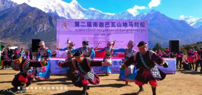 为“导入人流、植入文化”,充分展示米林浓厚的文化底蕴和浓郁的民族文化,激发米林旅游新活力,激情开启并热烈祝贺“第二届南迦巴瓦山地马拉松赛”取得圆满成功。在开幕式及颁奖仪式上,派镇行政村文艺演出队、米林县艺术团72名演职人员分别依次上台,为现场选手及观众献上了精彩的文艺演出。《九重舞》《鹰舞》《贡布广场舞》《腾飞林芝》《欢聚》《天湖之恋》6个群舞、独唱将非遗传承、民族传统与现代艺术形式紧密结合,欢快的舞蹈、高亢的歌声、靓丽的服装、整齐的动作,迅速将现场点燃,现场氛围热烈,掌声、欢呼声不断。