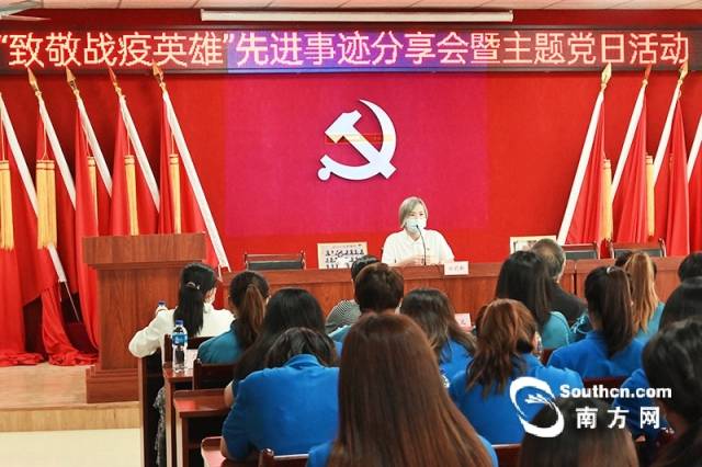 6月9日下午,广东省足球运动中心联合广州白云区竹三村委共同组织举办“致敬战疫英雄”先进事迹分享会暨主题党日活动。省足球中心机关全体人员、广东省女足教练员运动员、竹三村委干部共计120余人参加。活动邀请了广州市红十字会医院骨科援鄂医护英雄、2020年广东省五一劳动奖章获得者郑莉斯主管护师现场讲述疫情期间的典型故事。