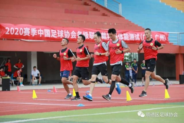 按中国足协要求,结合广东省内实际情况,7月8日-10日,广东足协协同广州足协在顺德开展2020赛季中国足协各级联赛裁判员赛前动员会及体能测试。两协会共有19名联赛裁判员及6名男子国家级推荐考核裁判员参加本次体测。同时在7月10日统一组织中乙联赛及女子成年赛事裁判员进行中国足协网络在线课程培训学习。