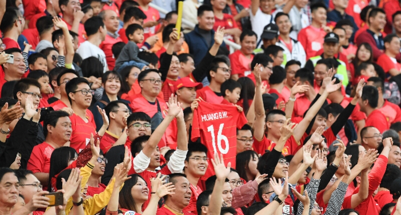 2019年12月1日,球迷在广州天河体育中心庆祝恒大夺得中超第八冠。 新华社发