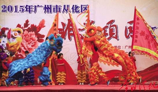 6.非遗表演,活力再现。现场还有古驿道上的非遗表演:鳌头醒狮,再现千年文化魅力。鳌头醒狮是从化鳌头镇流传最广的民间舞蹈,自明代在广东出现后,一直流传至今。醒狮作为一种地道的广东民间文化活动,具有浓重的地方特色。锣鼓一响,狮子立马舞动狮头,奔走跳跃,闪转腾挪,“三抛狮”、“高狮”、“左右张望”等醒狮动作,吸引着在场人员的目光,让人们感受了一场穿越千年的文化盛宴。