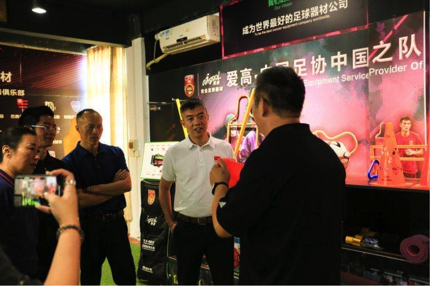 调研组一行在参观了爱高体育的专业足球器材展厅,对爱高旗下职业足球队器材系列、校园足球器材系列、幼儿足球器材系列、家用足球器材系列等全系列产品进行了全面而详细的了解后,充分肯定了爱高体育在足球器材研发和应用方面的深厚积累。