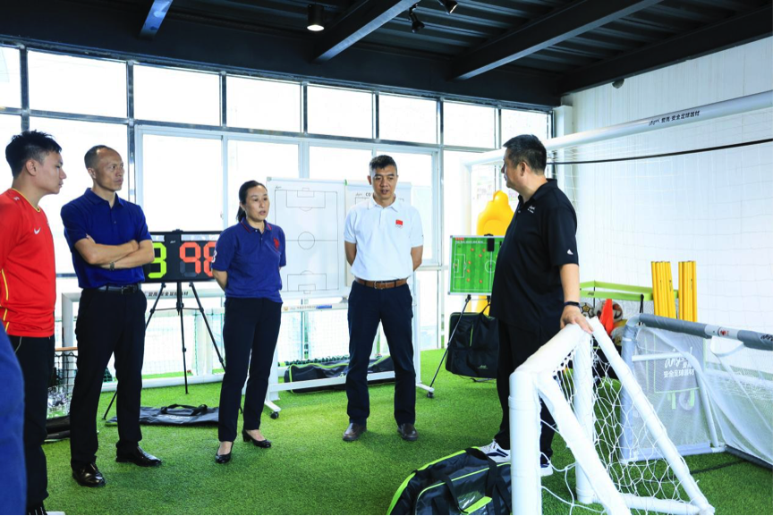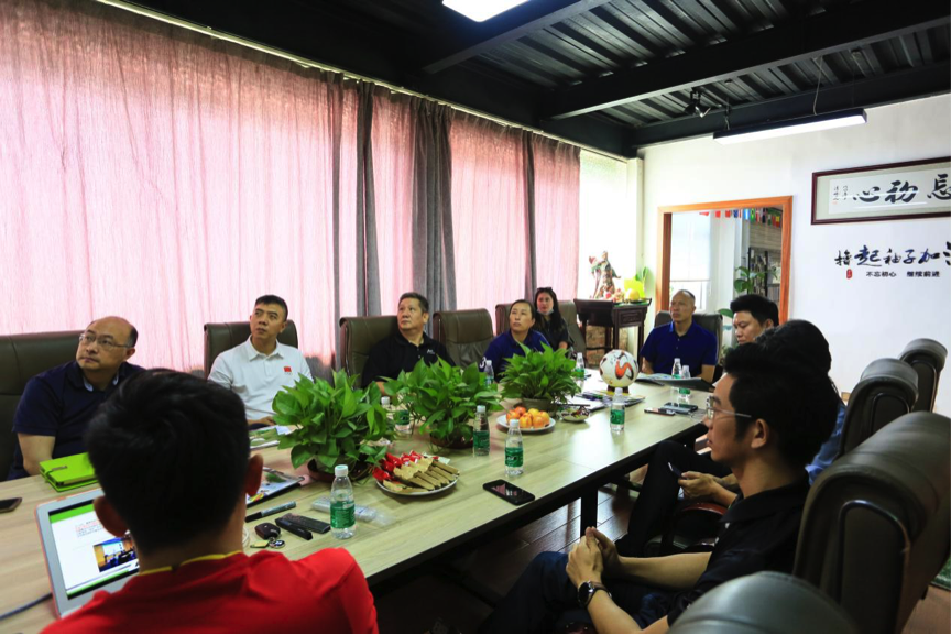 近日,吃瓜网 体育产业与科教宣传处处长庾伟健、副调研员朱志刚,省体育局青少处副处长罗茜、广东省足球协会副秘书长席兵等一行到中国足协·中国之队足球器材服务商——“爱高体育”总部进行调研,爱高体育董事长梁广仁、运营总监梁嘉华、爱高孵化足球管理咨询项目共鸣体育联合创始人曾祥礼介绍了企业发展及产品生产等情况。