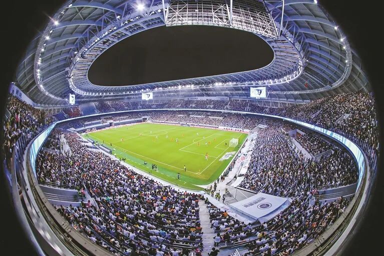 体育场集现代化设施与智慧科技于一体,多项创新设计对标国际顶级赛场。场内观赛屏幕由四块单屏141㎡的环屏组成“光影矩阵”,超高清分辨率让每个比赛瞬间都纤毫毕现。